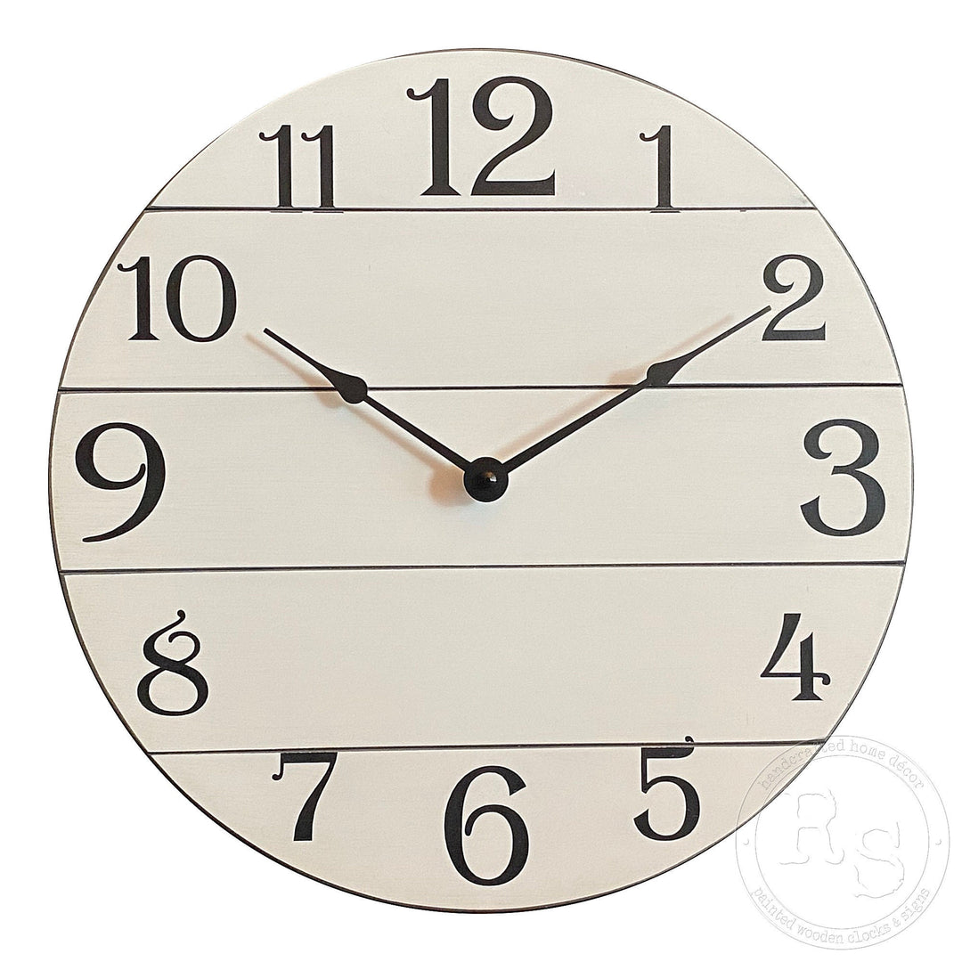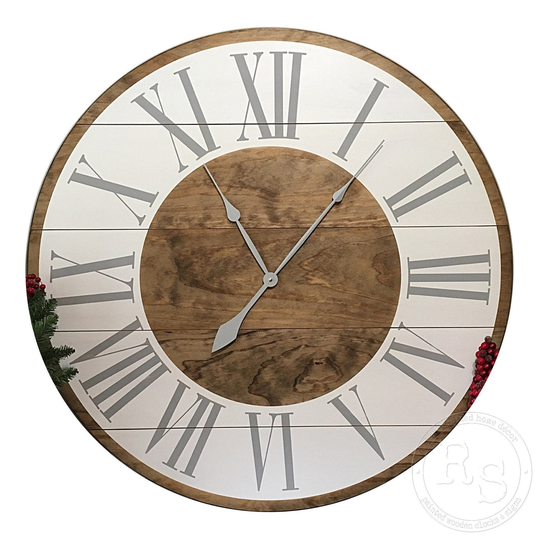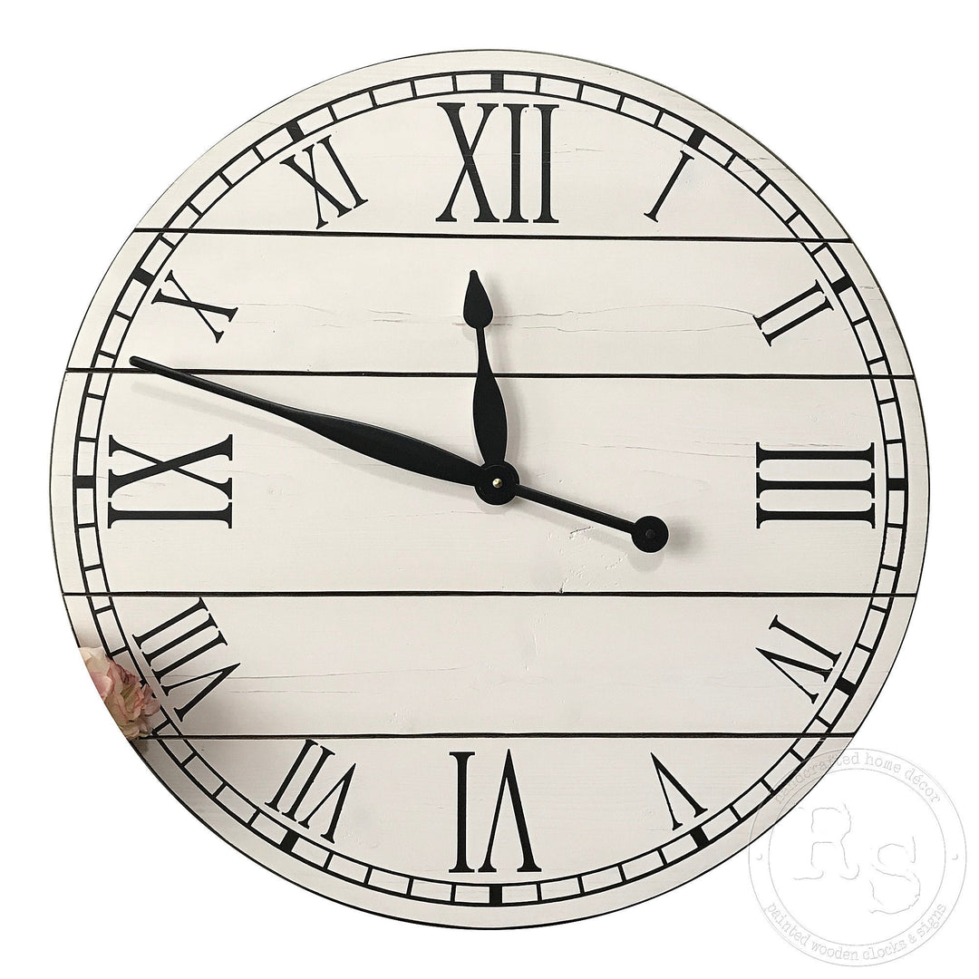 If you are looking for a unique high-quality farmhouse clock, you have come to the right place. We are the original creators of the very popular, very beautiful farmhouse clock. In 2013, we created the first farmhouse design and for many years we were the only seller who offered our farmhouse designs. Now we are often imitated, but never duplicated. You simply cannot compete with the quality of our designs and the craftsmanship of our products. We are very proud of that!