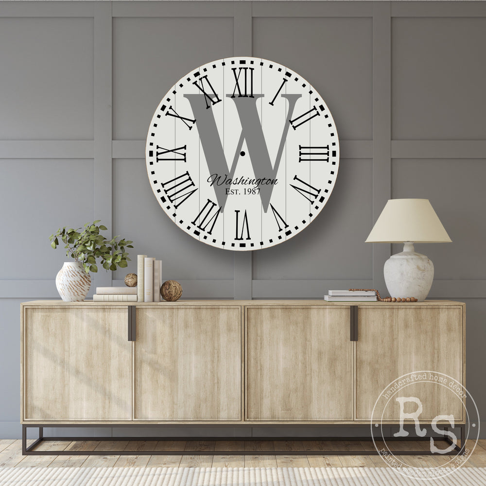 If you are ordering a personalized clock (i.e. - family name, established year or special saying), about a week before we start working on your order, you will receive a mock-up to approve your personalization. We must receive your approval before we can start on your order. We will use colors on your proof to give you an “idea” of what your clock or sign will look like, however these colors are not what the ending product will look like as the colors are not the exact same and display differently from one screen to the other. These colors should not be used as a tool to compare the colors when receiving your clock or sign!! Mock-ups are solely used for approving the spelling of your personalization and making sure it is how you want it displayed only.